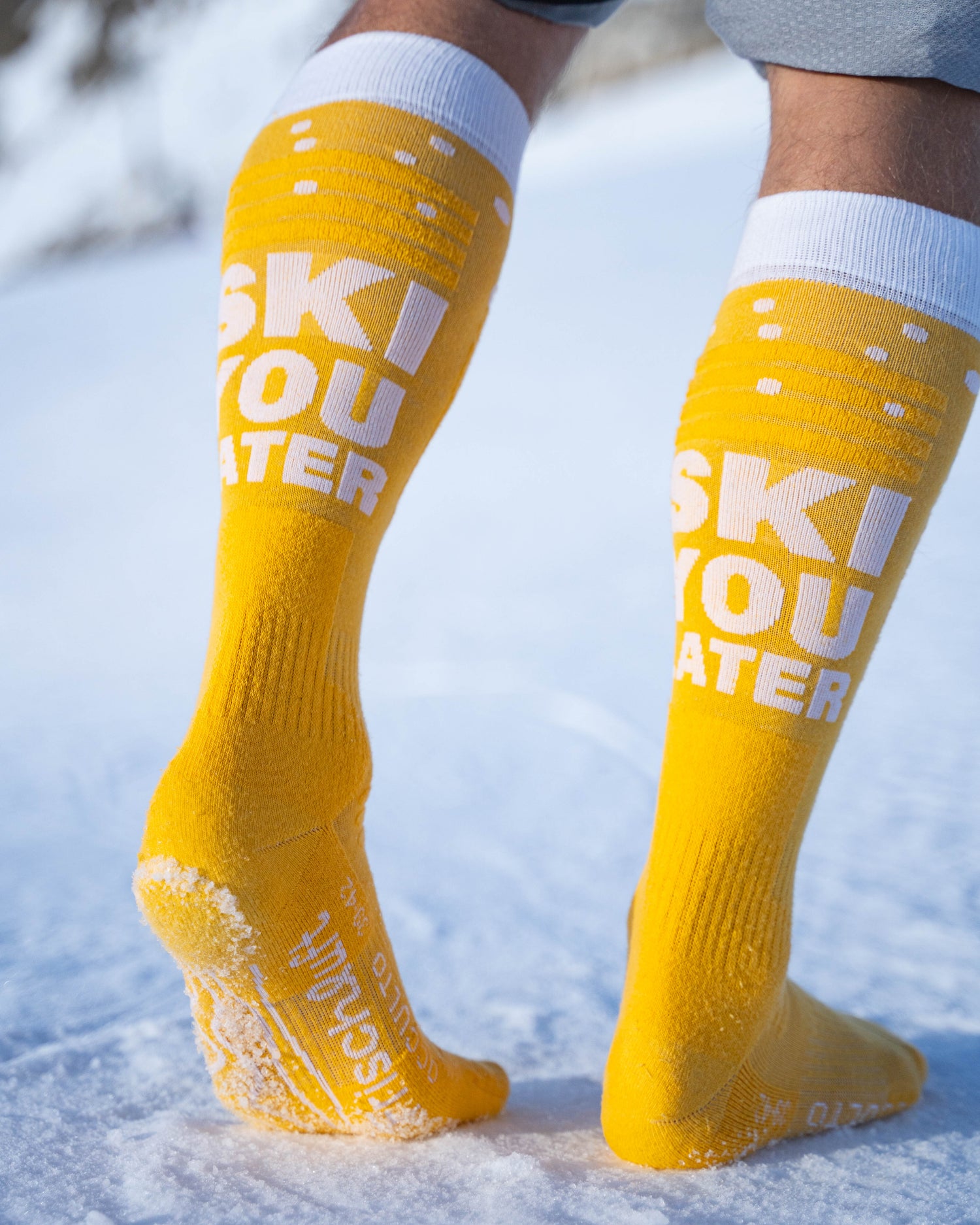Du liebst Powder, Piste und den ersten Einkehrschwung? Dann sind diese Skisocken wie gemacht für dich. Das „Ski you later“-Bier-Design ist das perfekte Statement für alle, die den Winter nicht nur fahren, sondern feiern.